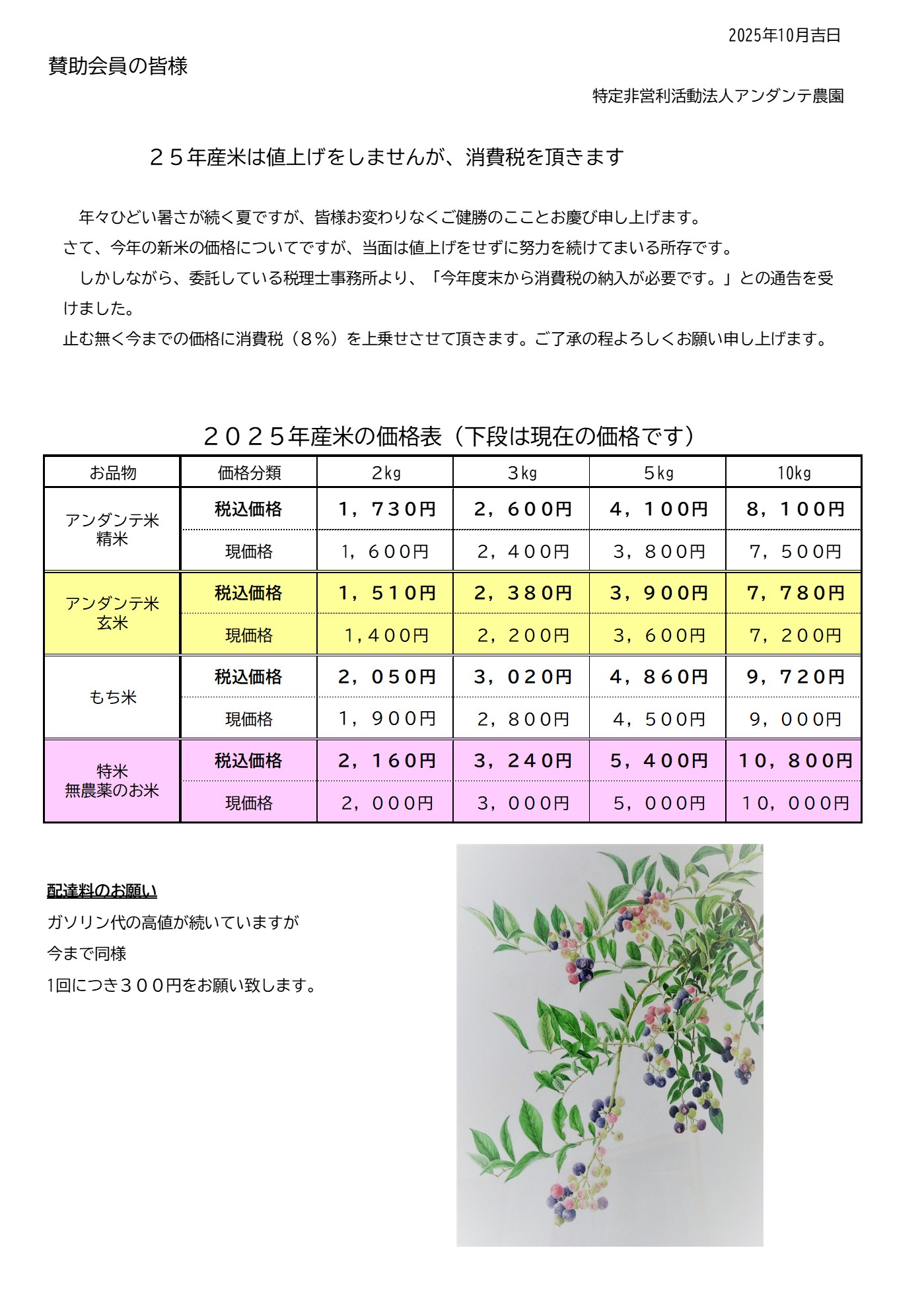 農作物 価格変更のお知らせ 植木の剪定・庭掃除 お値段の問い合わせを多く頂いていますが、見積もりの後に価格をご相談させて頂きます。 見積もりは無料です。 市場価格よりお安くお引き受け出来ると思います。 まずは見積もりのご連絡をお願いします。 TEL:0742-81-7471 FAX:0742-81-7472 賛助会員価格とは アンダンテ農園では年会費2,000円の正会員を募集しています。 正会員の特典として上記の「賛助会員価格」があります。 賛助会員のお申込みは、お電話でお問い合わせください。