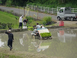 よいお天気のもと、いよいよ今日から田植えが始まりました。