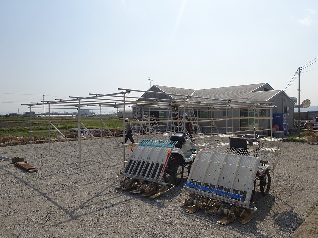田植機が作業所から出発します。
