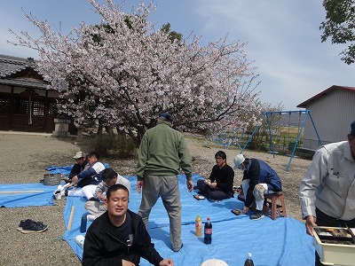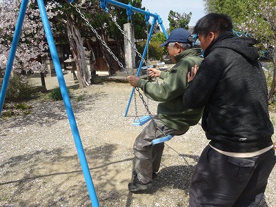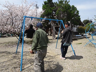今日のお昼はお弁当を持って近くの神社でお花見をしました。天理の就労継続支援B型の「こもれび」さんの協力で量がたっぷりのほかほかのおいしいお弁当です。