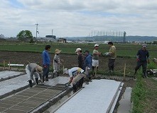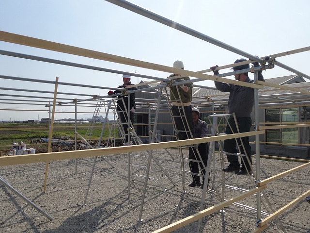 農機具庫の建設も手作りで行います。