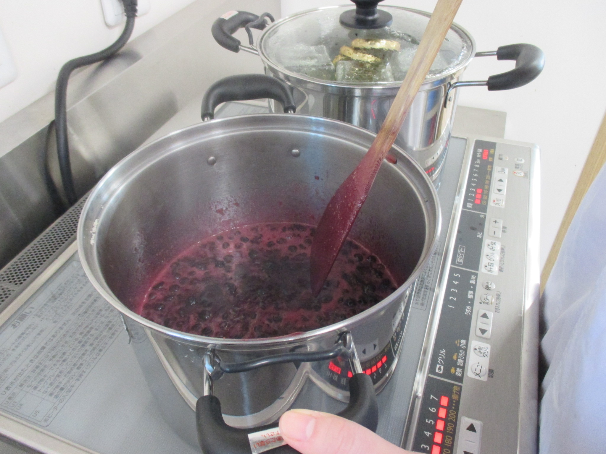 先日、昨年の夏に収穫して冷凍保存していたブルーベリーを使ったジャム作りを職員の北村さんと一緒にさせて頂きました。ブルーベリージャム作りはとてもシンプルで丁寧に作られていました。