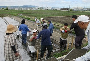ここは今市3番の田です。たくさんの人数をかけて田植えをしています。