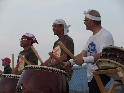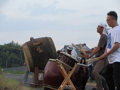川西町から太鼓の達人を招いて勇壮な演奏で盛り上げます。
