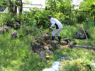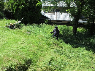 刈払い機で除草作業を行っている様子です。